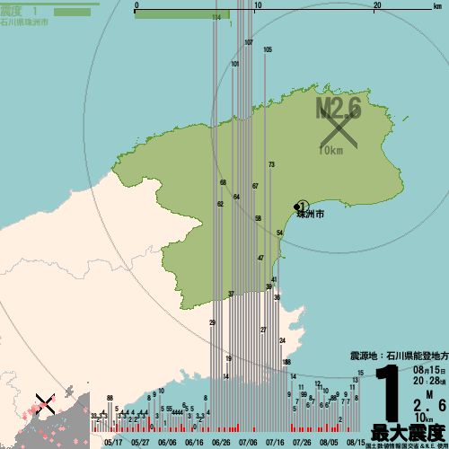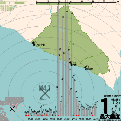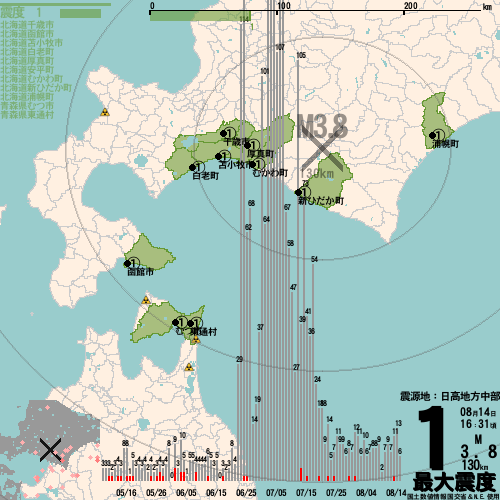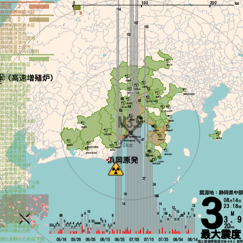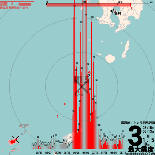 日本の地震の震度情報を、市区町村単位で、地図に描きます。地震は、地盤によって意外な揺れ方をしており、一概に近いほど揺れている訳ではありません。震度3以上の地震はプッシュ通知でお知らせします。津波注意報・津波警報が出ている場合、その旨を文字とともに、海を赤色に描画して警告します。過去の地震も閲覧できます。原子力発電所との位置関係を把握可能。