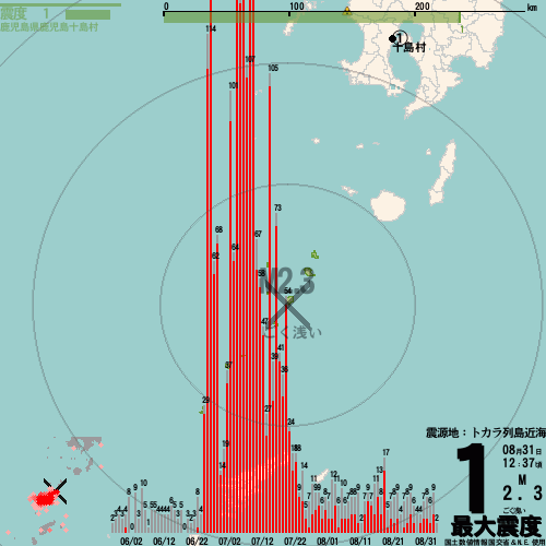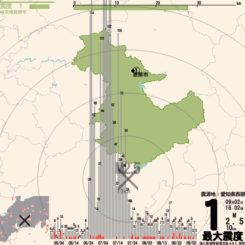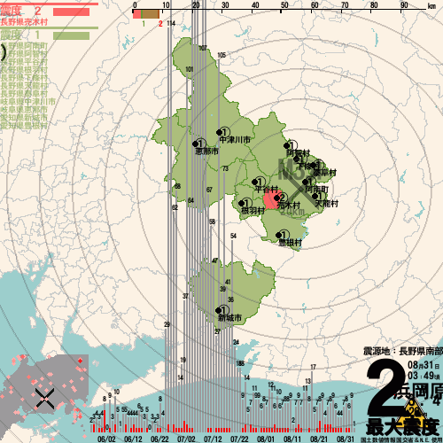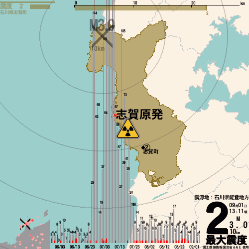 日本の地震の震度情報を、市区町村単位で、地図に描きます。地震は、地盤によって意外な揺れ方をしており、一概に近いほど揺れている訳ではありません。震度3以上の地震はプッシュ通知でお知らせします。津波注意報・津波警報が出ている場合、その旨を文字とともに、海を赤色に描画して警告します。過去の地震も閲覧できます。原子力発電所との位置関係を把握可能。