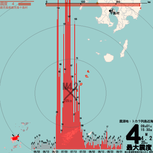 ◆気象庁の地震情報を引用加工して、独自の地図を生成し、表示しています。