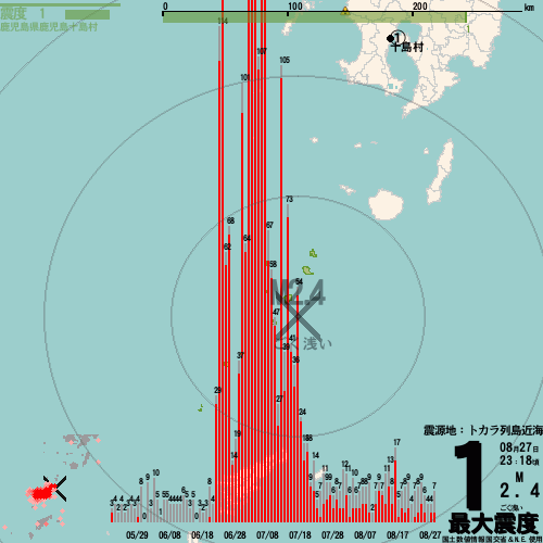 日本で起きた地震を、震度1以上を対象に描画。震度3以上の地震についてはプッシュ通知。津波注意報・津波警報が出ている場合、その旨を文字とともに、海を赤色に描画して警告。過去10回の地震の閲覧。Twitterでのスムーズな情報共有。地図の生成には、気象庁の公開している地震情報と、国土交通省の国土数値情報(行政区域・湖沼・市区町村役場)を利用しています。